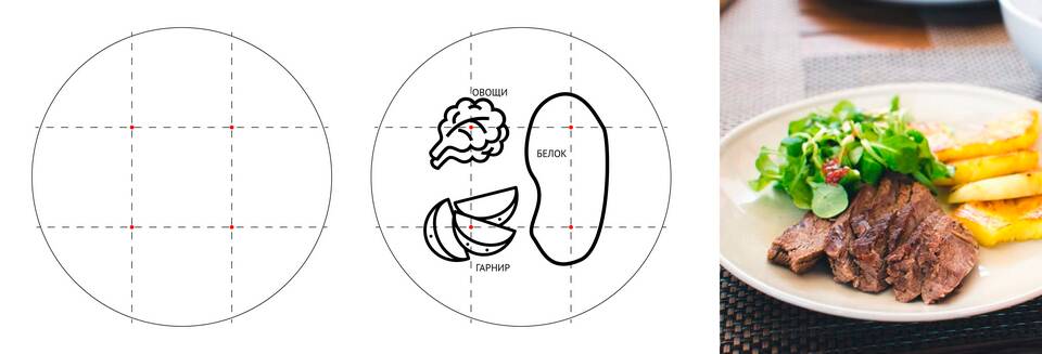 | Мясо с гарниром | Мясо в центре, гарнир по бокам |